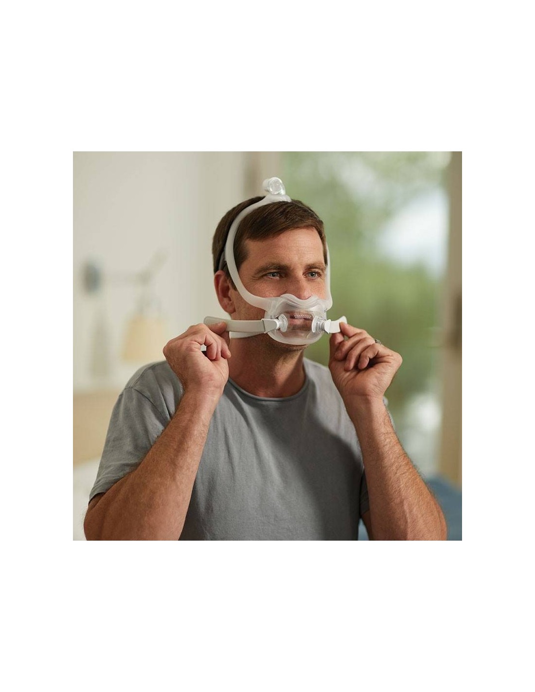 El arnés de las mascarillas CPAP DreamWear Full Face le permitirá ajustarse la mascarilla gracias a la incorporación en su estructura de lengüetas, permitiéndole una mayor comodidad en su terapia.