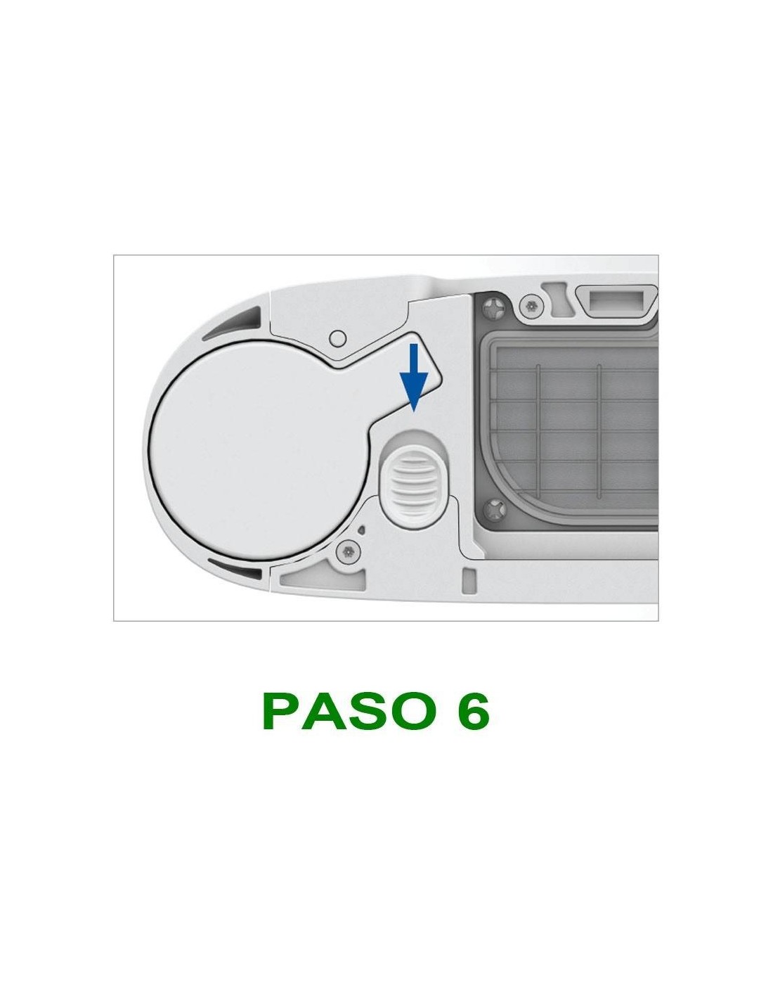 Los filtros se encuentran en la parte delantera superior del equipo. Al quitar la batería, en la parte inferior del equipo, se observa un punto azul en cada columna.