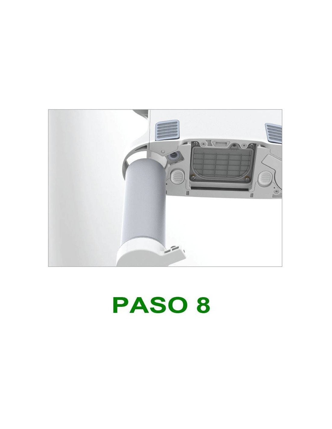- Introduce la columna (tubo metálico) empujándola en el dispositivo de modo que quede completamente asentada en el concentrador. El botón del seguro con resorte debe regresar por completo a la posición cerrada.