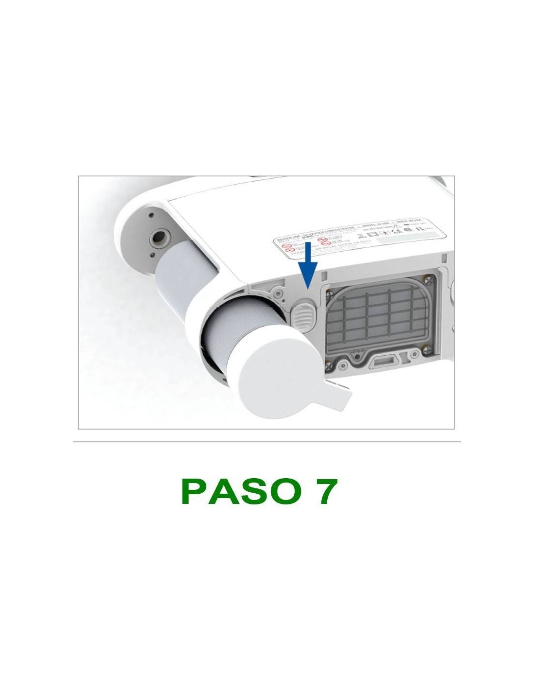 Les filtres se trouvent sur le dessus avant de l'équipement. En retirant la batterie située sous l'équipement, un point bleu est visible sur chaque colonne.