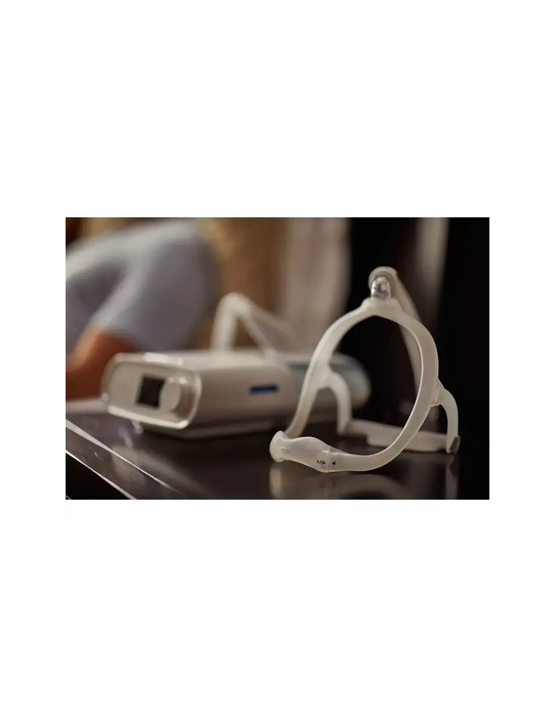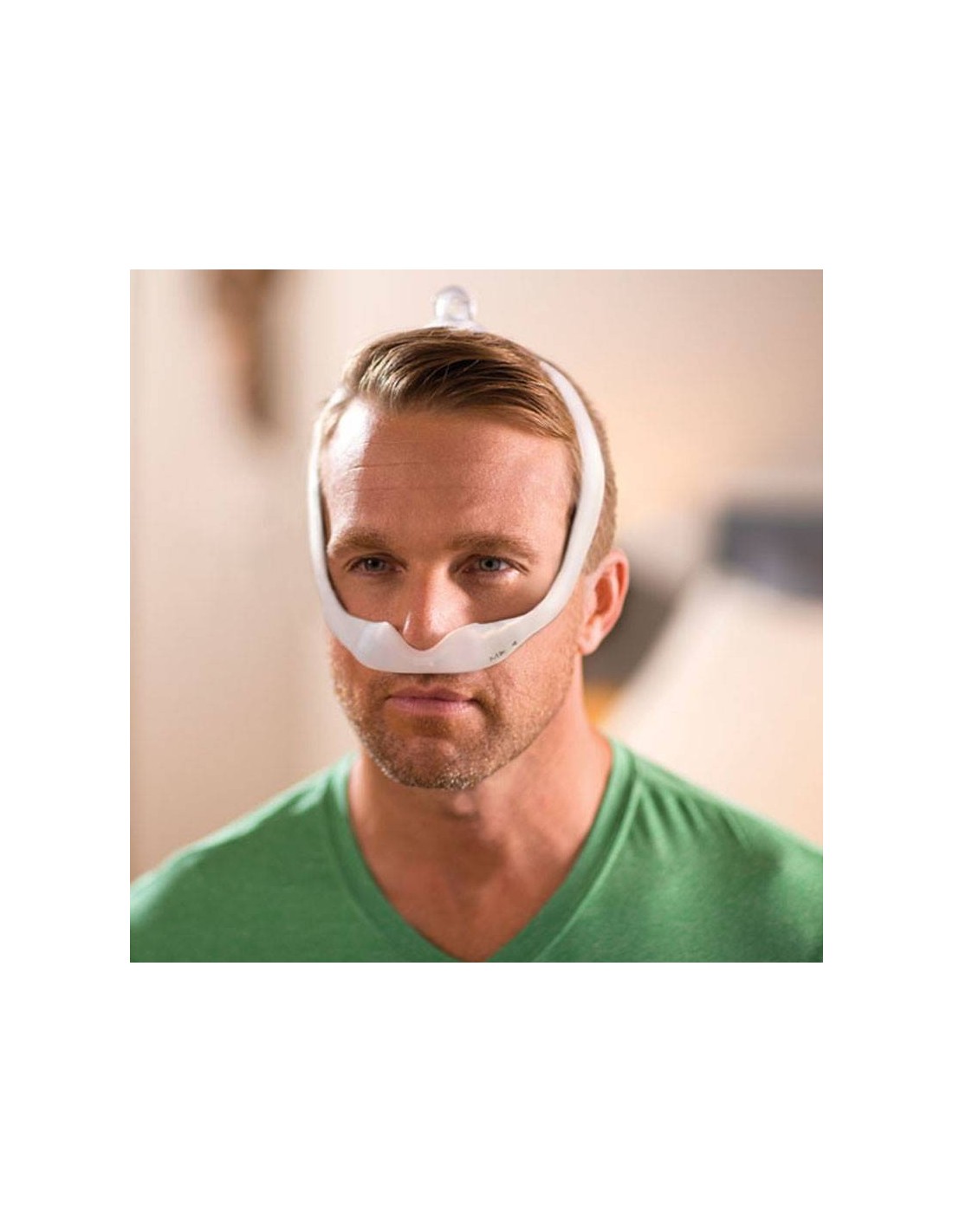 Le masque de contact minimal DreamWear couvre la zone essentielle du nez, donnant au patient l'impression qu'il n'est pas en contact avec la surface de soutien du visage.