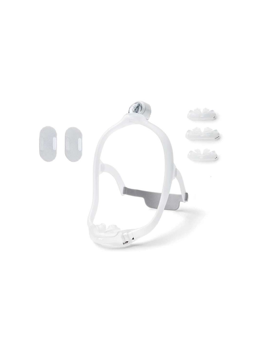 - Contact minimal des olives nasales: Oreillers en gel DreamWear (insérés dans les narines).